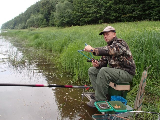 Закидывать горошины с руки удобно на ближней дистанции — до 10 м. Если приходится прикармливать далее, то стоит воспользоваться рогаткой: с ней и дальность и кучность прикармливания резко повышаются. Рогаткой можно уверенно кормить горохом россыпью на расстоянии до 20 м. На течении стоит делать некоторое упреждение до точки ловли — горошинам необходимо приличное время, чтобы достичь дна. Если есть необходимость прикармливать на большей дистанции, что, впрочем, бывает крайне редко, то приходится смешивать горошины с грунтом и лепить небольшие шары, как из обычной прикормки.