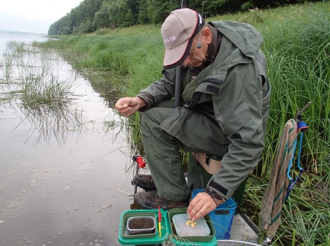Для прикармливания на течении я часто использую смесь грунта, сыпучей, уже увлажненной прикормки, распаренной пшеницы и гороха. Но это общий случай, когда может клевать самая разная рыба. При целенаправленной охоте за солидными экземплярами кроме грунта и гороха ничего более не нужно.