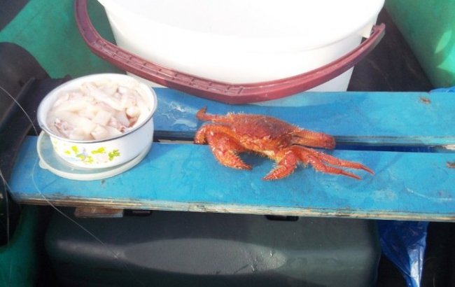 До чего же жадным оказался. Тащил я его с глубины метров 20, но свою добычу он отпускать не захотел, вот и оказался в лодке, но не долго — отправлен к себе домой.