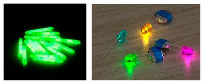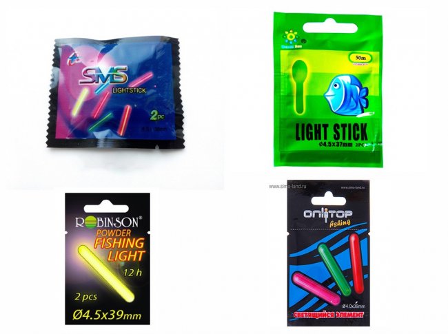 Есть два типа рыболовных светлячков: с питанием от батареек, и химические.