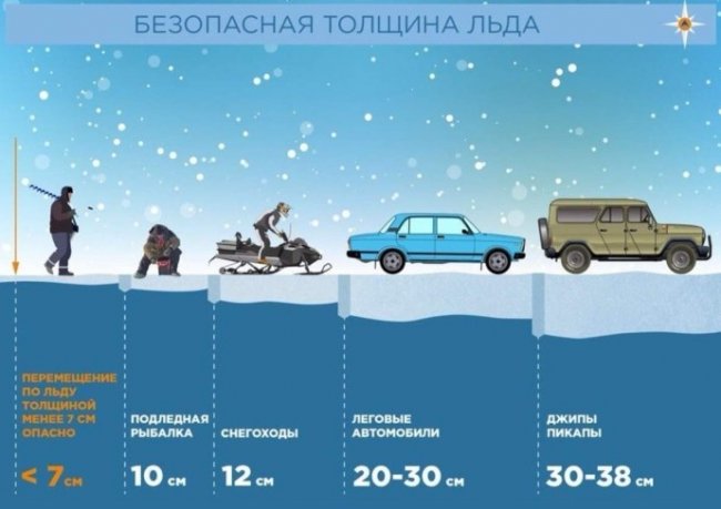 Для сохранения жизни и здоровья во время зимнего досуга следует помнить о местах, где лед предательски тонок: