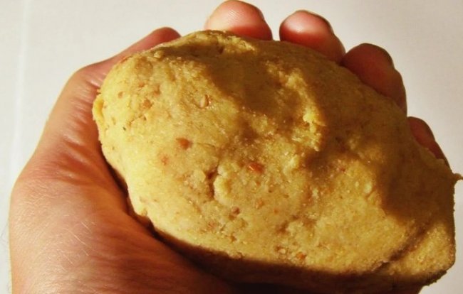После того как вся масса начинает кипеть, огонь переводят на медленный. При этом, постоянно помешивая, добавляют в смесь пшеничную муку грубого помола. Муки потребуется столько, чтобы получилась тягучая тестообразная масса. После остывания смеси ее тщательно разминают. Перед рыбалкой такое тесто лучше всего хранить в холодильнике, завернув его в чистую слегка увлажненную ткань, исключающую высыхание насадки.