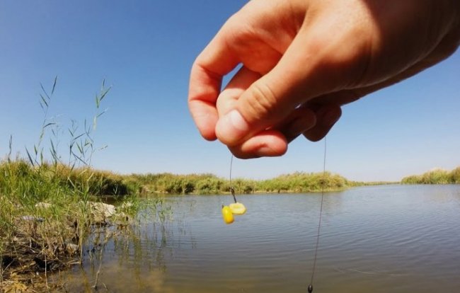 Для того, чтобы успешно ловить карпа, на один крючок необходимо насаживать несколько зёрен кукурузы, так как данную рыбу привлекают объёмные приманки.