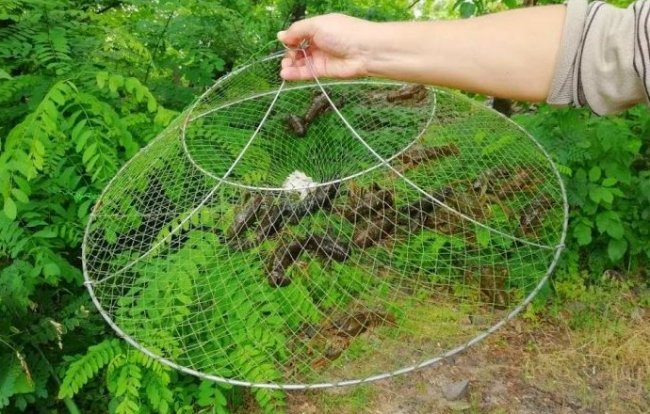Контрольный шнур крепят узлом к шесту, который в свою очередь воткнут в откос у берега, либо плавающему бую. Ловушка сооружается таким способом, чтобы у рака, который вцепился в приманку, не было возможности выбраться из рачевни в момент подъема её из водоема. Вытаскивать ловушку нужно шустро. Можно одновременно применять несколько ловушек, которые необходимо установить на расстоянии от пяти до десяти метров друг от друга. Мы рассмотрели самый распространенный тип рачевни.