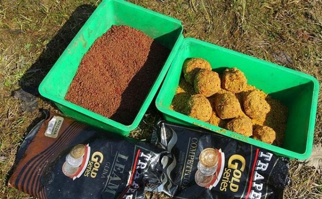 В качестве наполнителя кормушки использовалась карповая прикормка TRAPER, а насадкой на крючок обычная консервированная кукуруза. Прикормка готовилась в специальном складном ведре для прикормки с добавлением воды из водоёма. После заброса удилище устанавливалось на две телескопические подставки – параллельно береговой линии у среза воды. При установке его на подставки при помощи катушки вершинка устанавливается с некоторым отклонением в сторону заброса для натяжения лески.