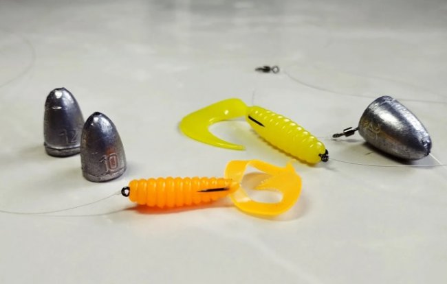 Или такая задача: заброс - семьдесят метров, а глубина - до двух. Не успеете и дужку закрыть, а приманка уже на дне, и оторвать её непросто. На больших глубинах при ловле с лодки с проводками на яму тяжёлая огрузка хорошо держит дно, а разнесённость приманки и огрузки не снижает уловистости по причине излишнего веса приманки.