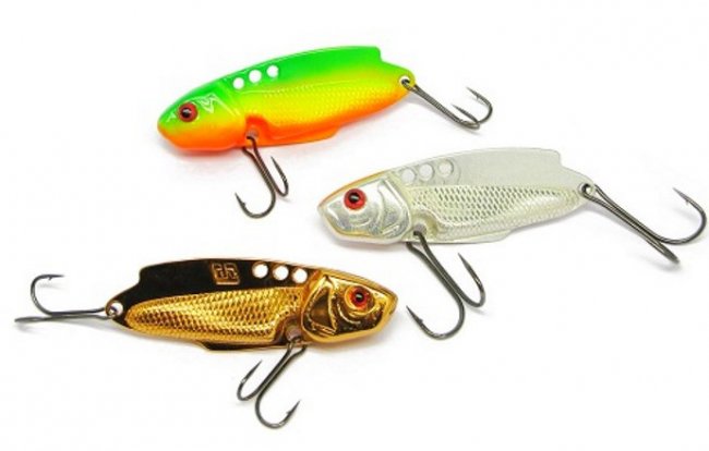 Для ловли хищника в отвес применяют увесистые вибрирующие блесны типа цикад. Цикада представляет собой сплошной металл в виде рыбки с тонкой спинкой и утолщенным брюшком. Такая форма способствует быстрому опусканию ее на дно, хорошей скорости перемещения в воде и агрессивной игры при поднятии приманки вверх во время проводки. Характер игры приманки зависит от диаметра выполненных на ее теле отверстий и их места расположения. Сом - хищник, который плохо видит, но чувствительность к вибрациям у него феноменальная.