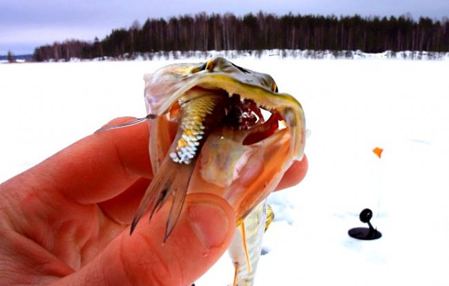 При ловле на подледники рыболову не надо делать подсечку, так как обычно, когда рыболов проверяет снасть, щука уже давно засеклась самостоятельно и надежно сидит на крючке. Это тоже можно отнести к преимуществам подледных жерлиц, и вот почему. Очень часто бывает, что неопытный рыболов, видя поднявшийся флажок, спешит к своей жерлице, топая по льду и пугая хищника. А взявшись за леску, делает торопливую, преждевременную подсечку. И тогда щука просто выпускает из пасти чуть помятого, пожеванного живца.
