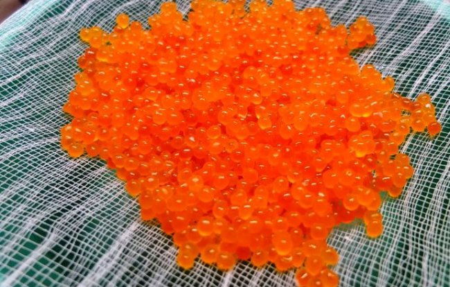 Этот деликатес получают из различных видов лососевых рыб, таких как горбуша, нерка, сёмга, чавыча. Ещё есть кетовая икра – она оранжевого цвета с красным отливом. Икра нерки отличается тёмно-красным цветом и своей неоднородностью. Икра горбуши, как правило, светло-оранжевая.