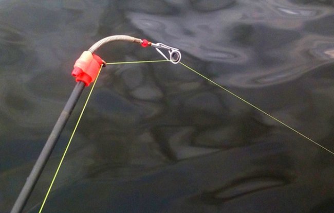 Удочку следует оборудовать удобной рукояткой, пропускными кольцами, небольшой проводочной катушкой и кивком.