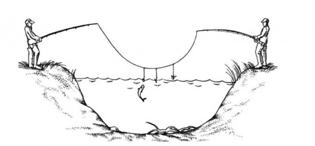 Если же вы приобретаете катушку исключительно для создания перетяжки, тогда мы можем вам посоветовать «Невские» катушки. Основные лески от двух спиннингов должны быть соединены при помощи тугой петли на выбранном спиннинге, также обязательно должен присутствовать на другом спиннинге карабин с устроенным вертлюжком. Приведенное соединение только на первый взгляд может показаться очень сложным, но на самом деле это очень удобный и самый простой вариант, так как при необходимости вы сможете в кротчайшие сроки рассоединить снасть. Например, если вы попали в труднодоступный участок берега, и вы просто не имеете возможность пройти по нему, в таком случае снасть отсоединяется и когда происходит обход, вновь присоединяется и становится единым целым.