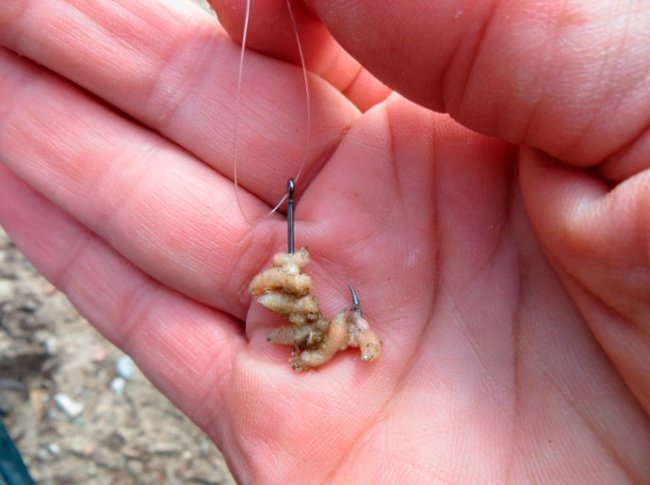 Он подходит для монтажа нескольких личинок мясной мухи (пучка). Этим способом пользуются в тех случаях, когда хотят избавиться от мелочевки, и ловить лишь трофейную рыбу. Бывает, что на одинокого опарыша реагируют только мелкие особи, но если подвешивают несколько личинок (от двух до пяти), то крупняк обязательно заинтересуется подобной насадкой. Особенно будут радоваться представители отряда карповых.
