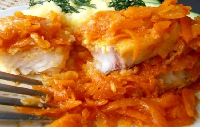Рыбу следует очистить, промыть и нарезать порционными кусками поперёк. Затем нужно посолить, поперчить, обвалять в муке и поджарить. Потом охлаждаем и заливаем маринадом.