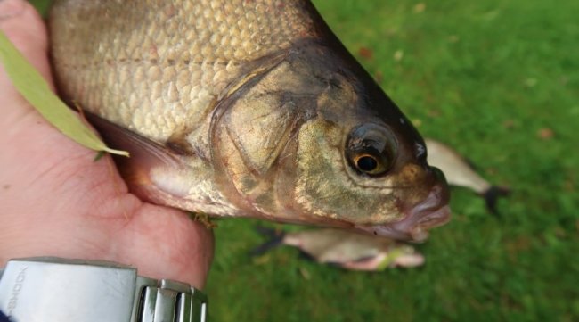 Поклевки стали редкими, но результативными. Через некоторое время клюнул еще один лещ и с ним я был внимателен и аккуратно завел его в сачек.