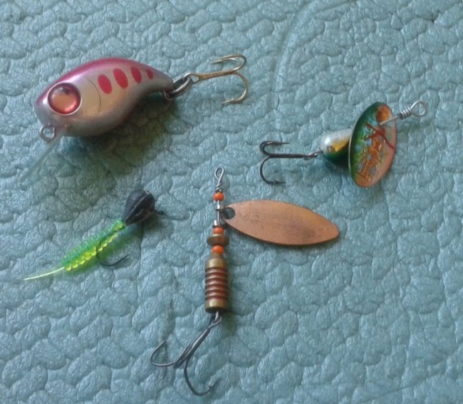 Неплохой результат приносит ловля на спиннинговую снасть с «вращалкой» и нахлыстовым удилищем на средних «мокрых» мушек, похожих на веснянок, личинок, и мушек, имитирующих мальков рыб. В качестве наживок прекрасно подходят различные черви, кузнечики, муравьи, жуки.