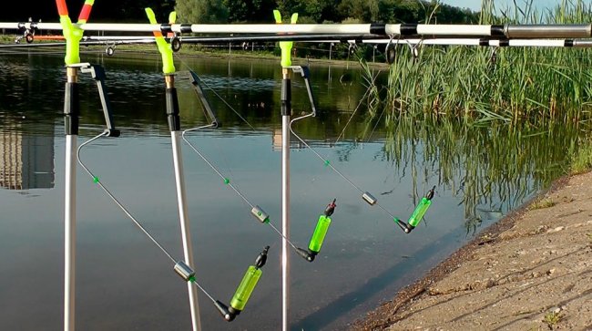 Удилище устанавливается на берегу, надежно закрепляется на подставке. Задача рыбака на этом этапе заключается в контроле правильного натяга лески и установке датчиков клева.