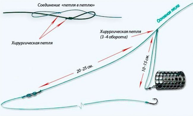 - Методом петля в петлю соединяем поводок с маленькой петлей.